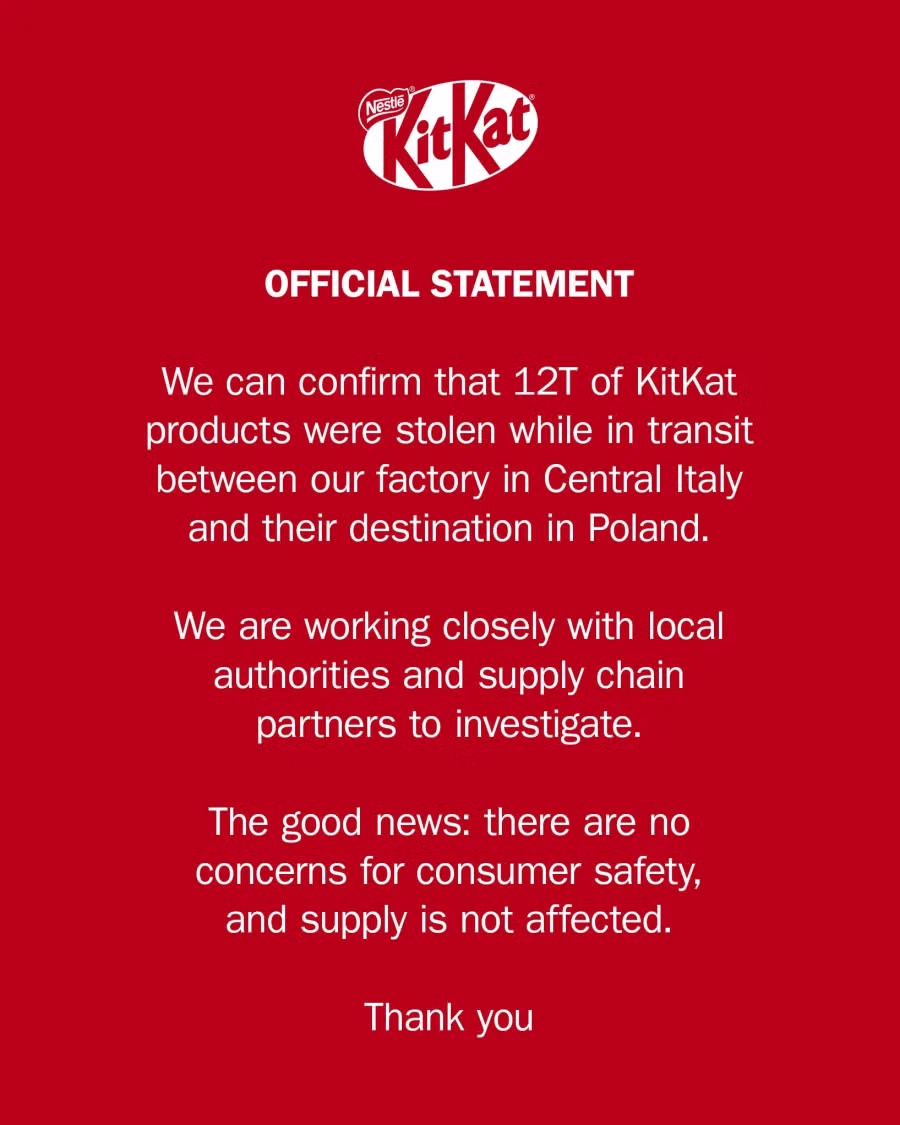 배송 중 초콜릿 12톤 도난 당한 킷캣 근황