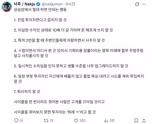 주식 상승장에 절대 하면 안되는 행동 7가지