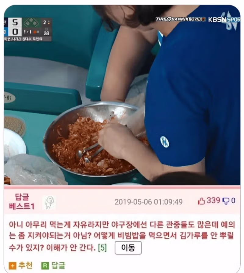 야구장 비빔밥 취식 논란.jpg