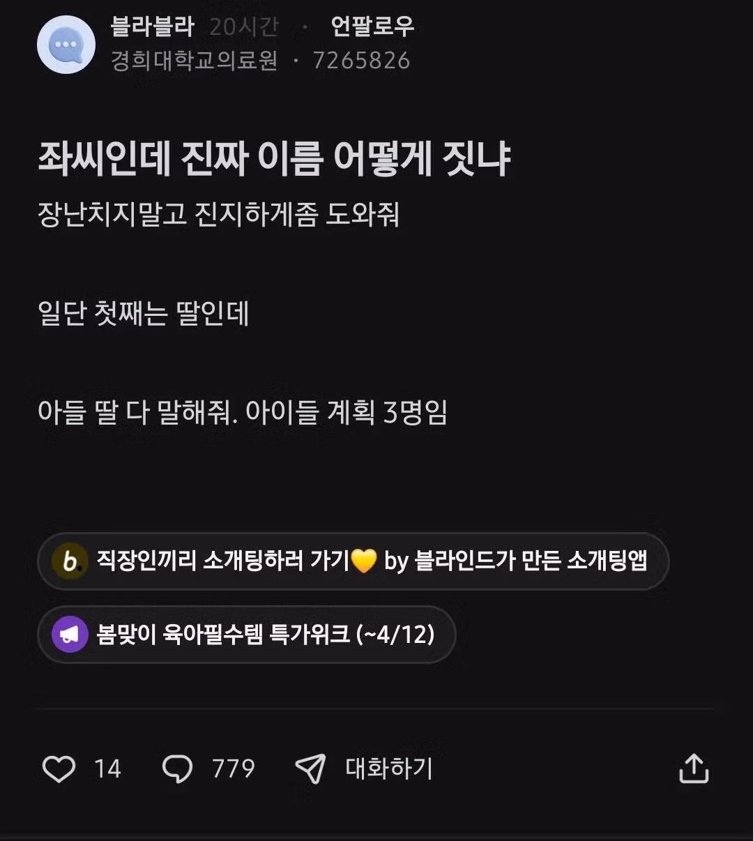 좌씨인데 진짜 이름 어떻게 짓냐 장난치지 말고