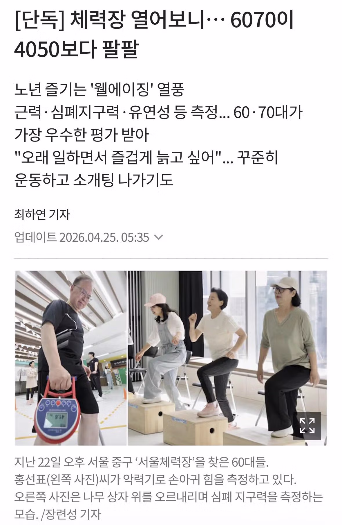 [단독] 체력장 열어보니… 6070이 4050보다 팔팔 ㄷㄷㄷㄷㄷㄷㄷ