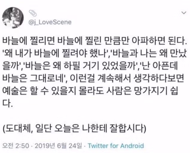 바늘에 찔리면 찔린만큼만 아파하면 됨