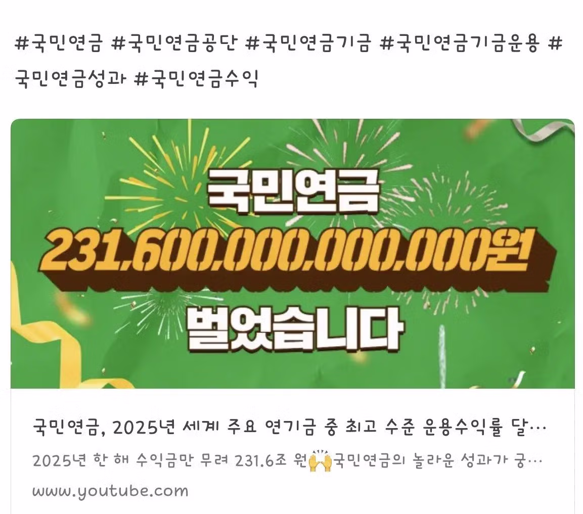국민연금 : 231,600,000,000,000원 벌었습니다