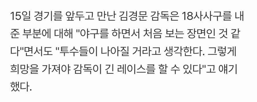 김경문 감독, “희망을 가져야 긴 레이스를 할 수 있다”