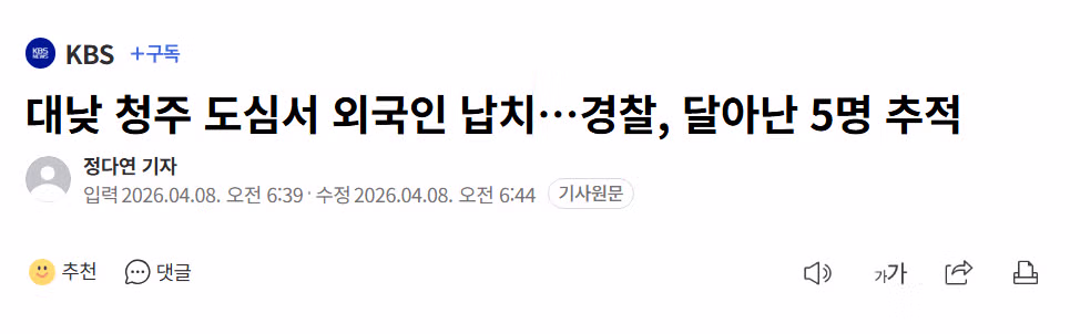 청주에서 납치사건 발생 ㄷㄷ...
