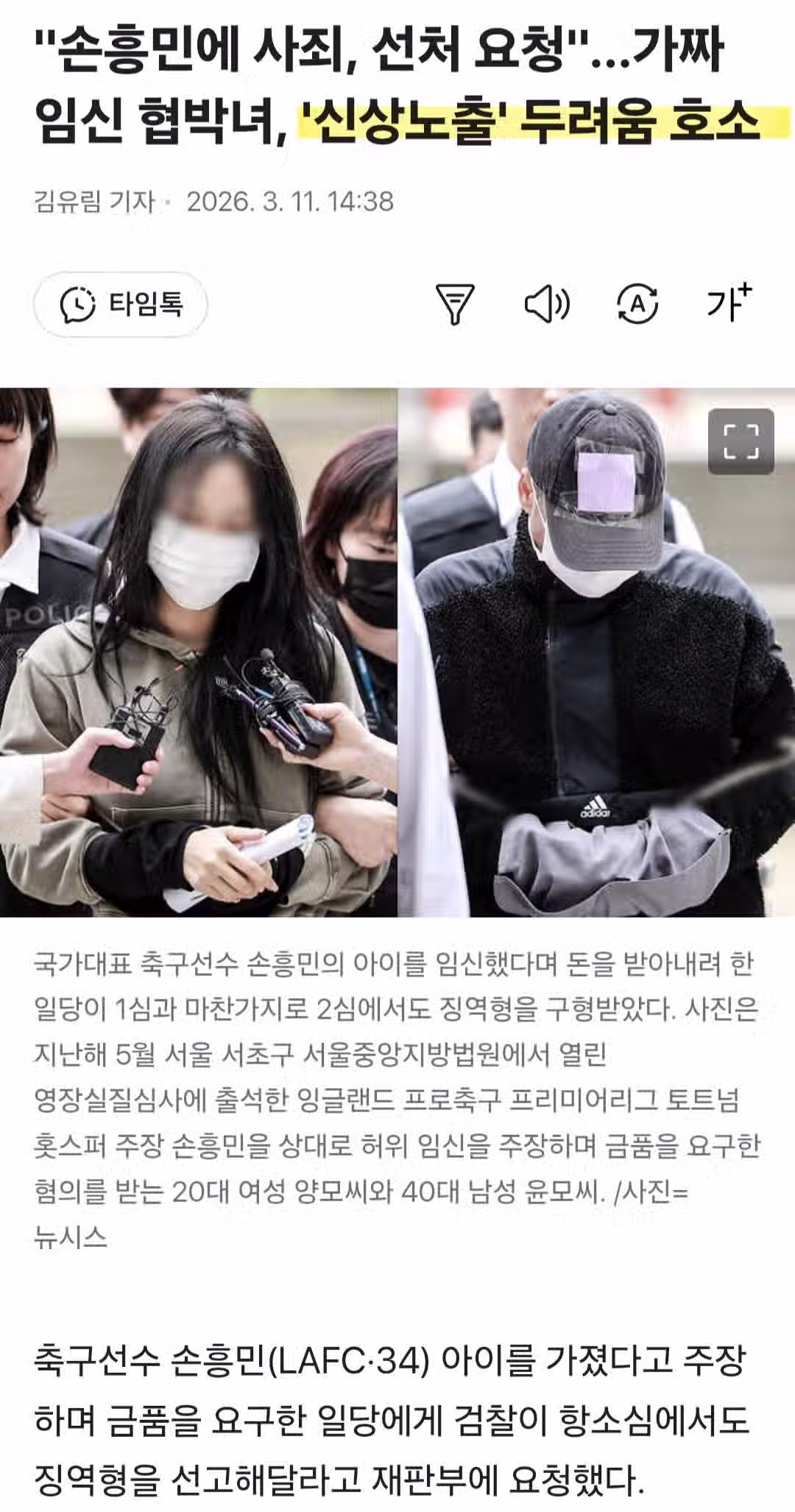 손흥민 협박녀...선처 요청, 신상 노출 두려움 호소