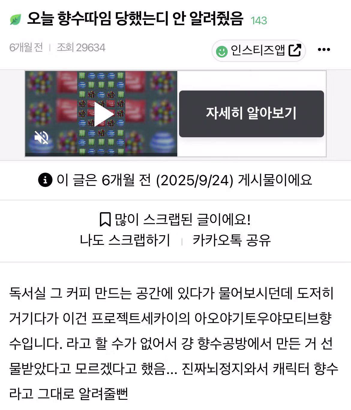 오늘 향수따임 당했는디 안 알려줬음