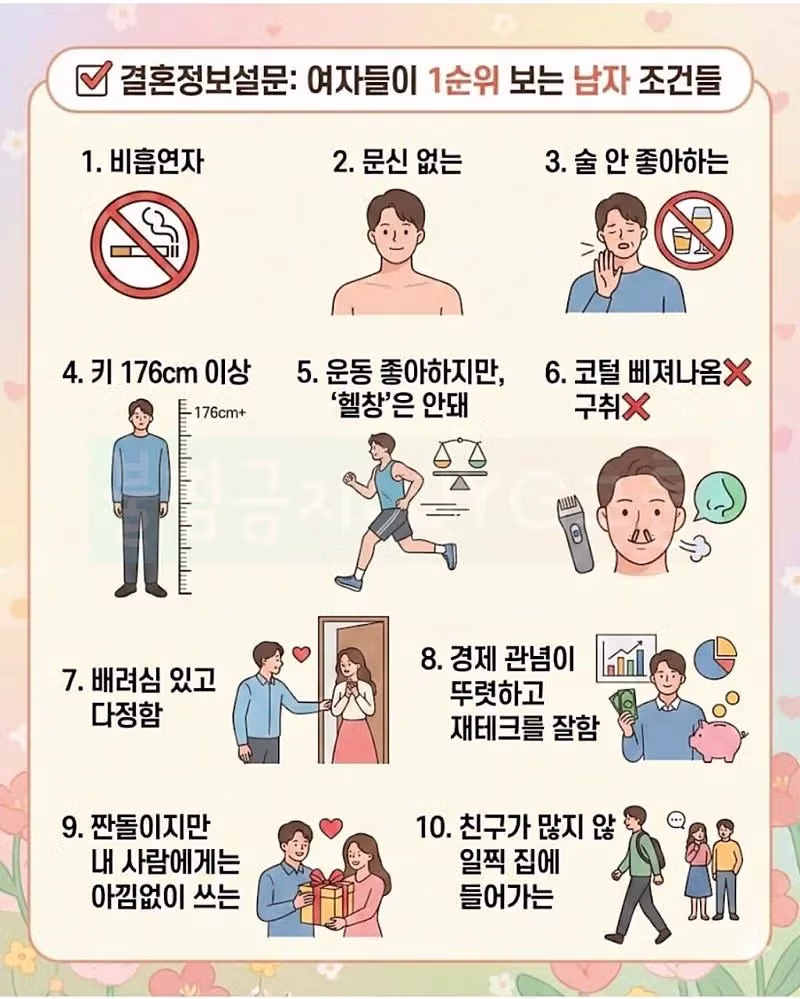 결정사에서 설문한 여성들이 남자보는 조건들.