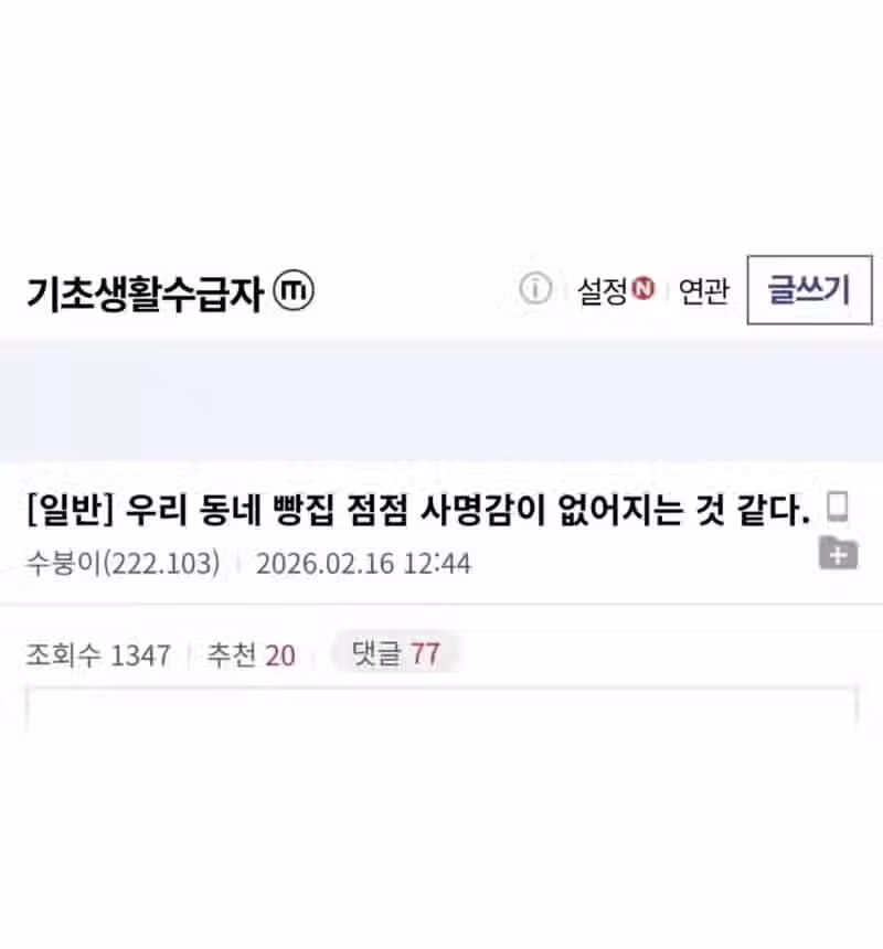 우리 동네 빵집 점점 사명감이 없어지는 것 같다