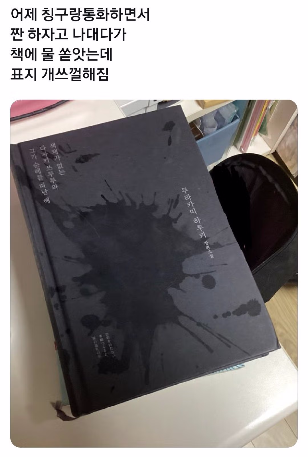 짠 하자고 나대다가 책에 물 쏟았는데 표지 개쓰껄해짐