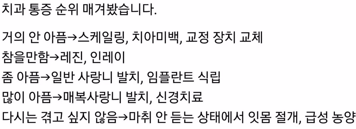 신경치료도 잘 하는 치과 가면 그렇게 안 아픈데 마취 안하고 잇몸 사이에 실 같은거 꾸겨 넣는게 개아프던데