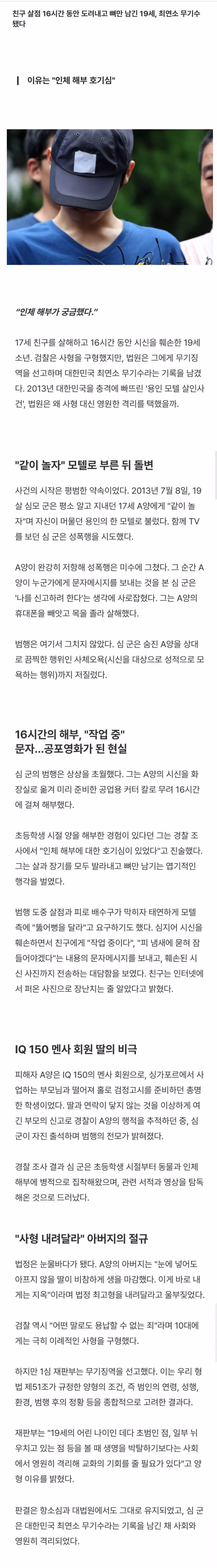 친구 살점 16시간 동안 도려내고 뼈만 남긴 19세 무기수 됐다
