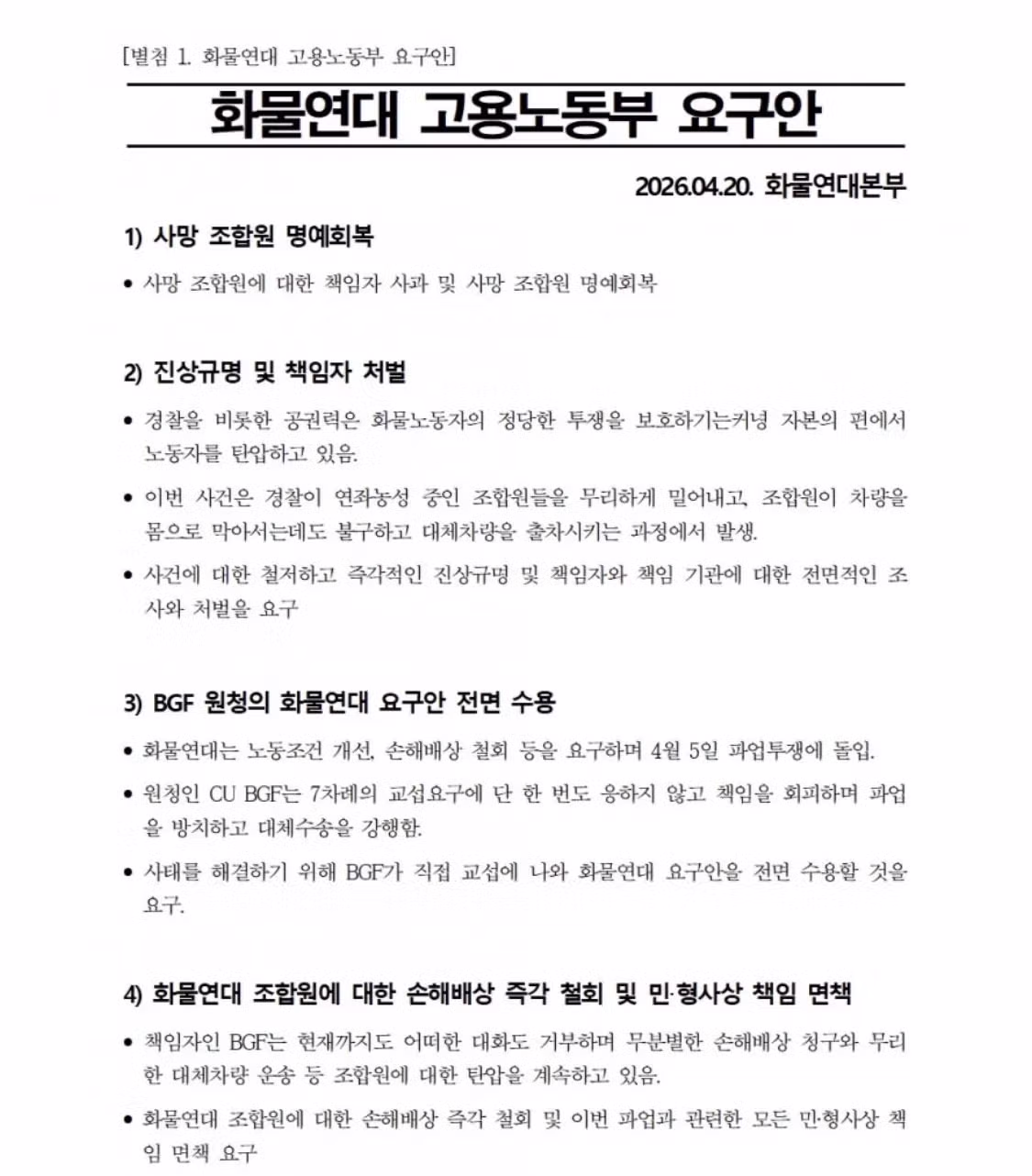 현재 화물연대 4대 요구안ㄷㄷㄷ