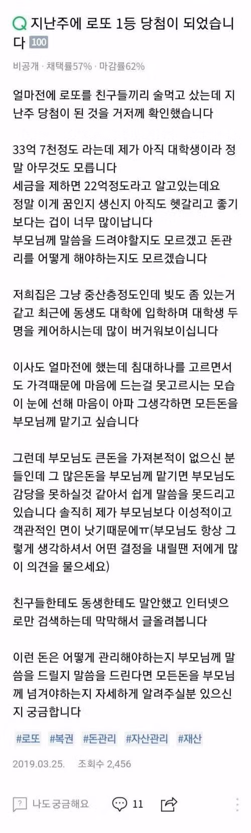 로또 1등 당첨돼서 22억 수령한 대학생, 1년 반 뒤의 후기