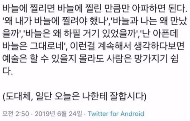바늘에 찔리면 찔린 만큼만 아파하면 된다