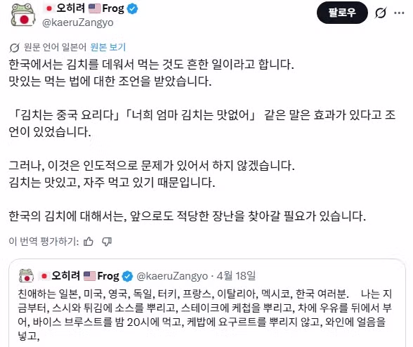한국에게 음식으로 도발넣는 방법 피드백받은 일본인