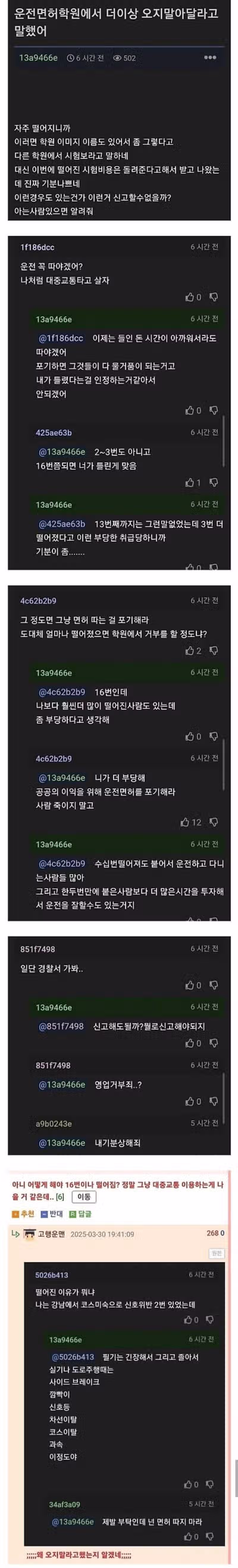 운전면허학원에서 더이상 오지말아달라고 말했어