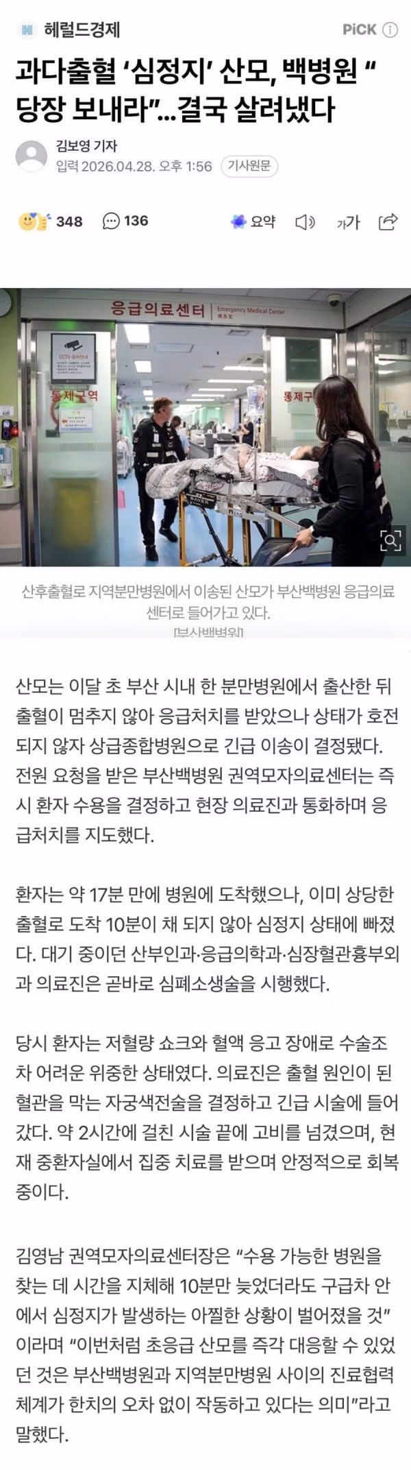 심정지 산모 살린 부산 백병원 - 밈카세