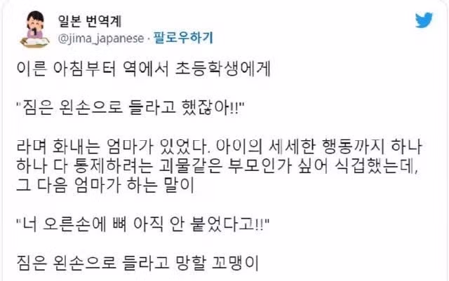 아이 물건 드는 손까지 통제하려는 엄마