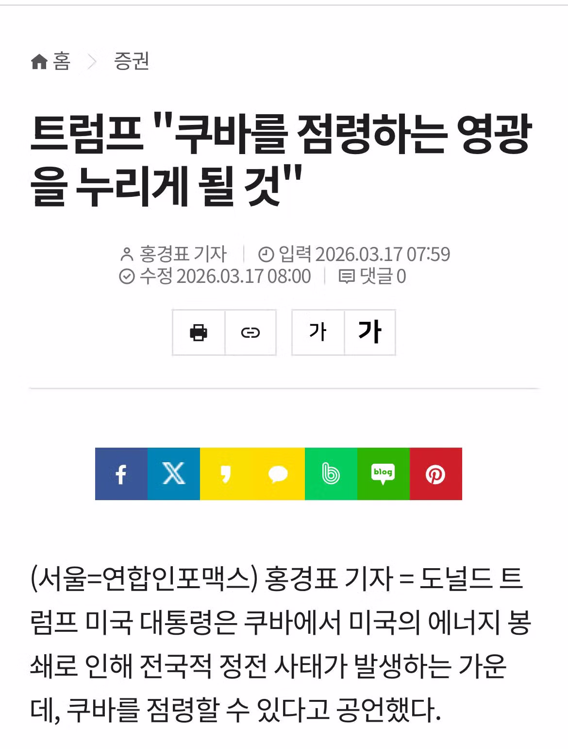 트럼프 "쿠바를 점령하는 영광을 누리게 될 것"