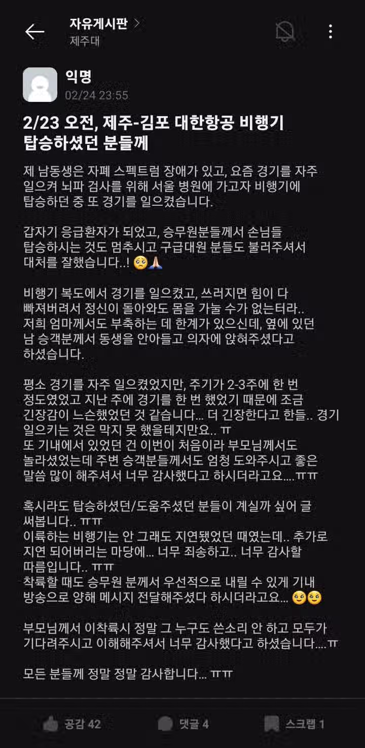 23일 제주에서 김포로 가는 비행기에서 있었던 일