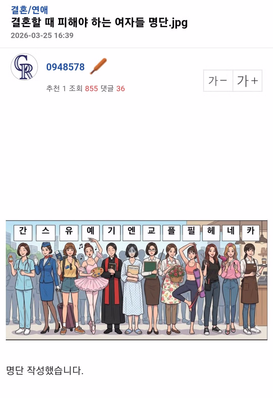 남초 커뮤에서 만든 결혼할 때 피해야 하는 여자들 명단