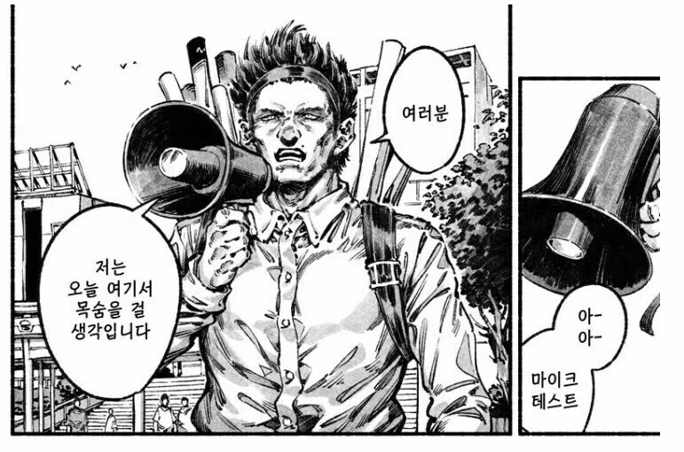 여러분 저는 오늘 여기서 목숨을 걸 생각입니다
