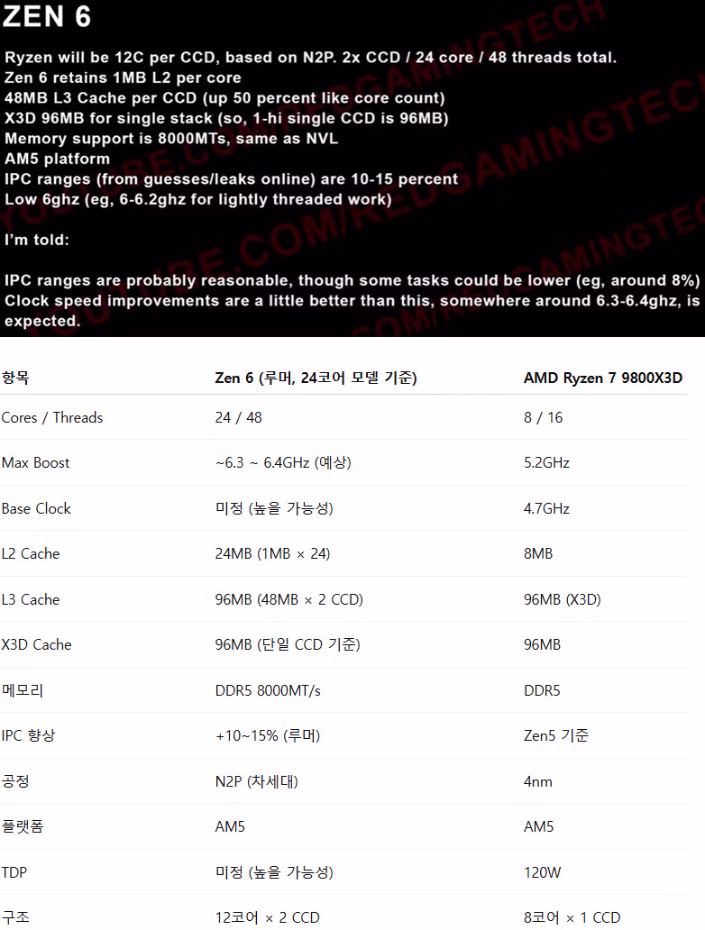 [루머]AMD ZEN 6 CPU 사양