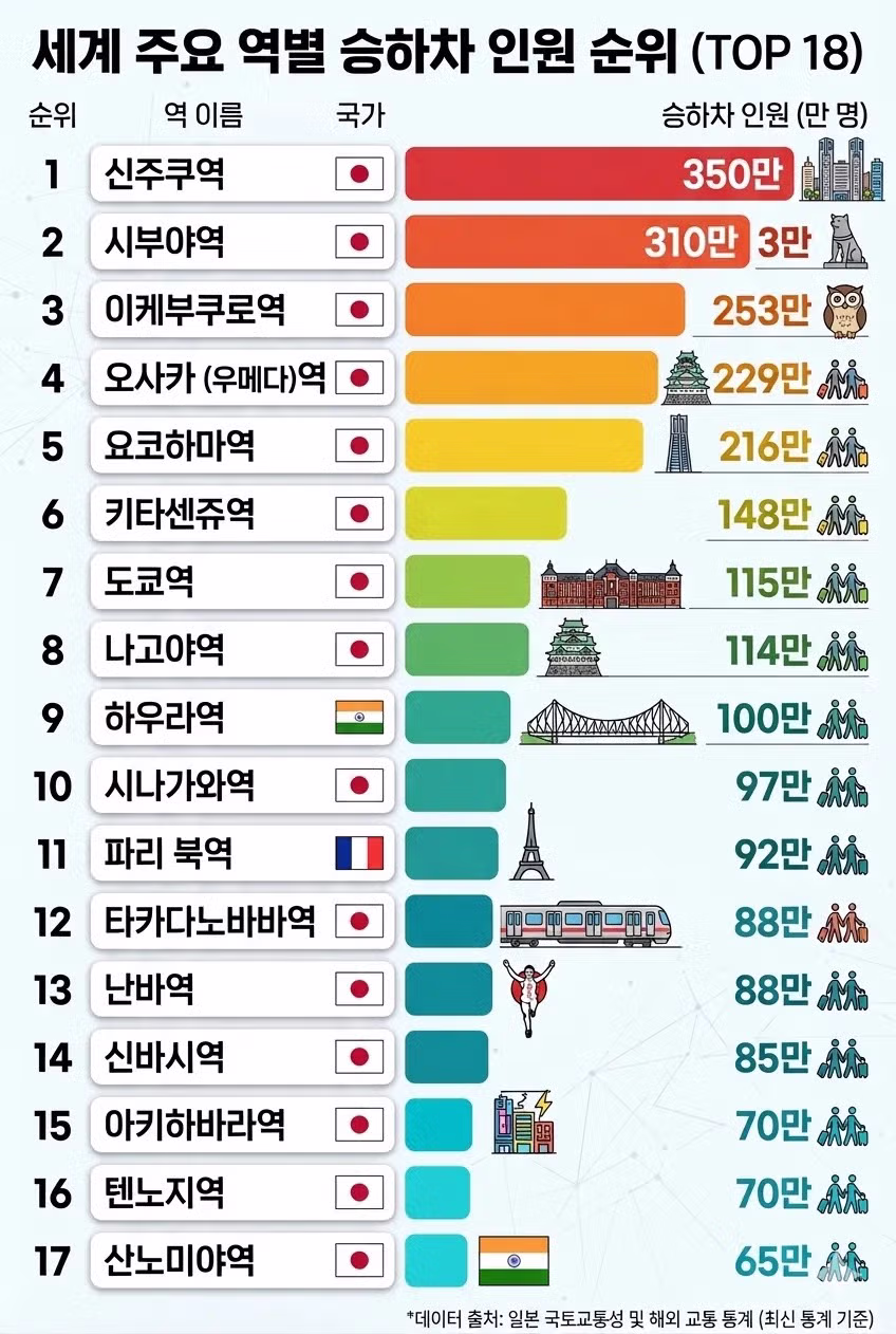 한국은 잠실, 강남역이 20만 정돈데 신주쿠역 350만은 도대체...
