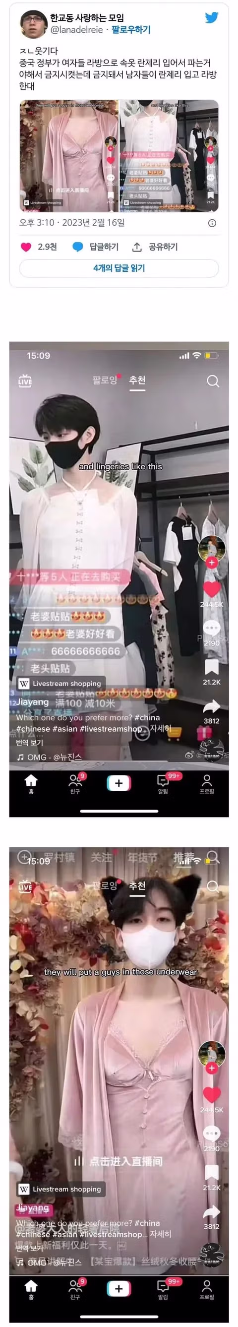 중국정부 여성들의 란제리 착용 홈쇼핑방송 금지