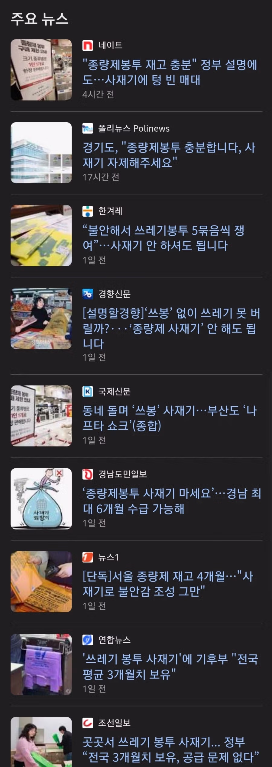 근데 사재기도 종량제봉투 사재기하는건 도대체 뭐지...?