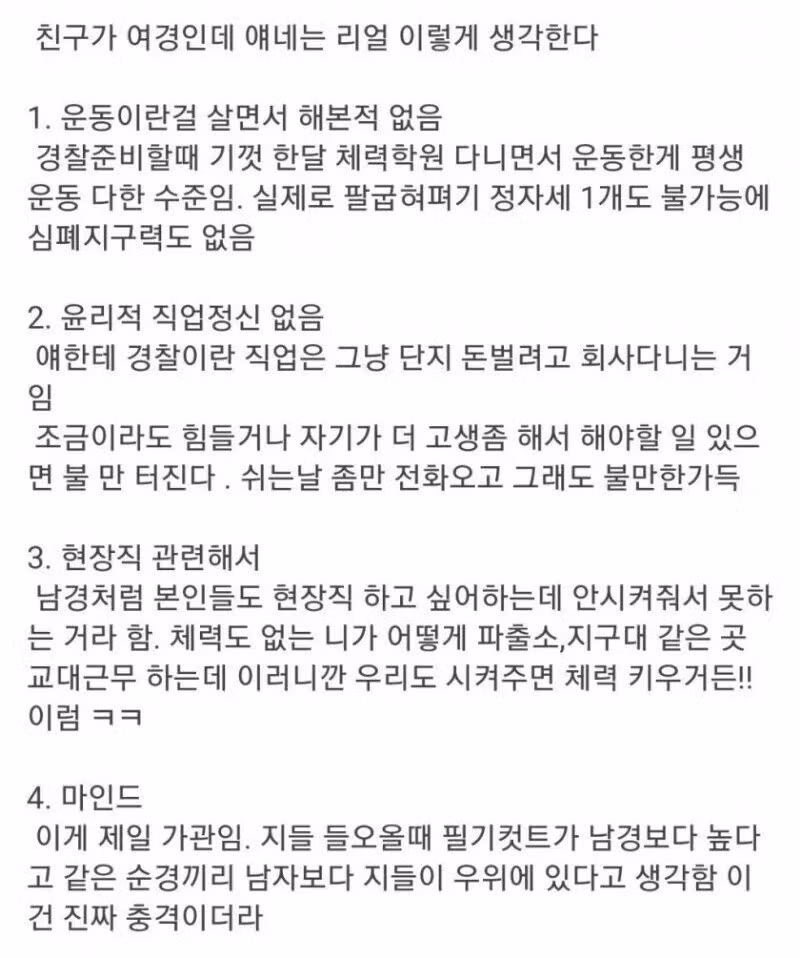 여경 친구가 바라본 여경