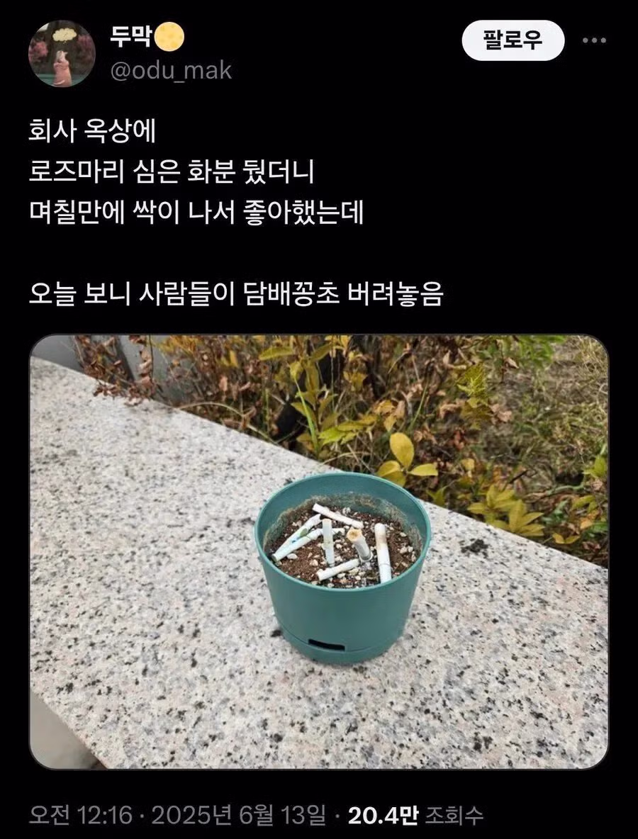 회사 옥상에 화분을 두었더니