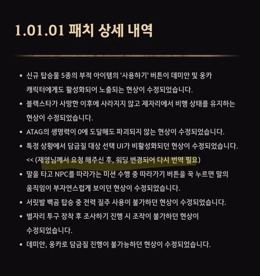 붉은사막) 엌ㅋㅋ 방금 전에 뜬 기습 패치 노트 ㅋㅋㅋㅋㅋ