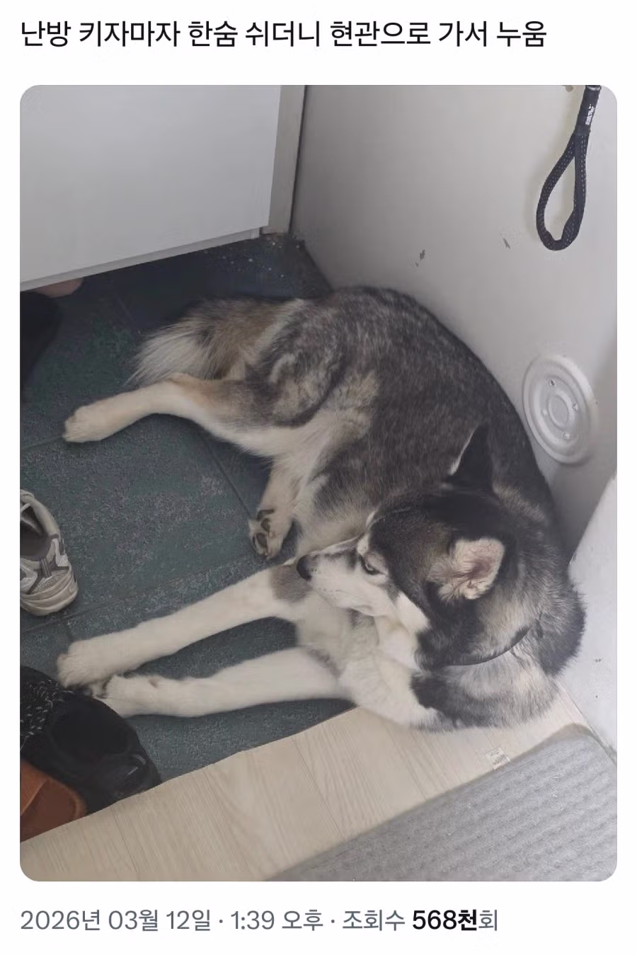 허스키들 여름에 에어컨 안틀어주면 진짜 힘들겠다