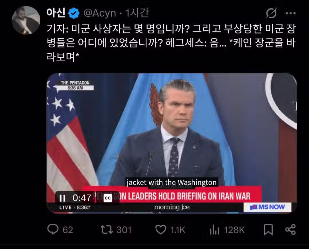 오늘자 레전드) 미군 사상자 수 몰라서 스턴 걸린 "미국 국방장관"