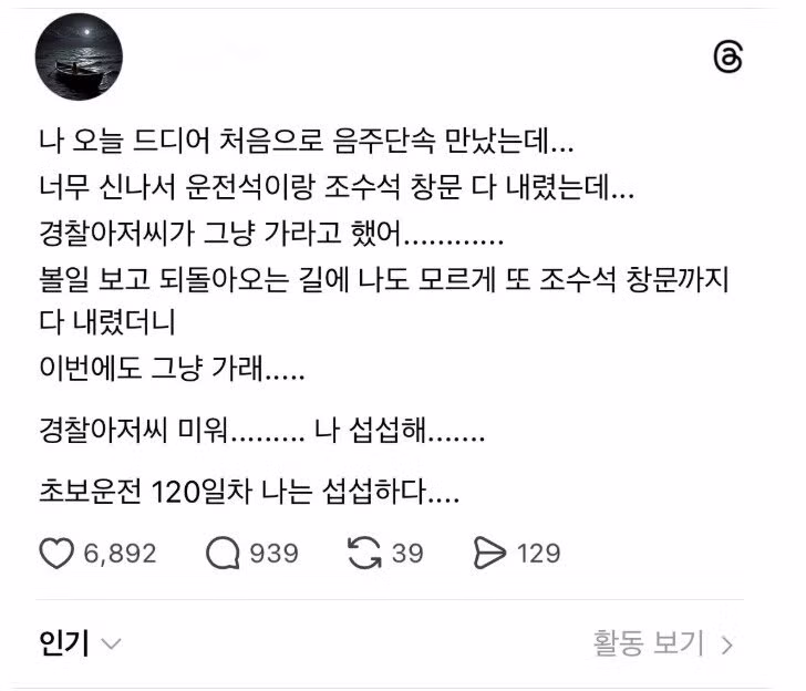나도 가끔씩 단속걸리면 존나 설렘 지루한 운전중 빅이벤트 느낌ㅋㅋㅋ