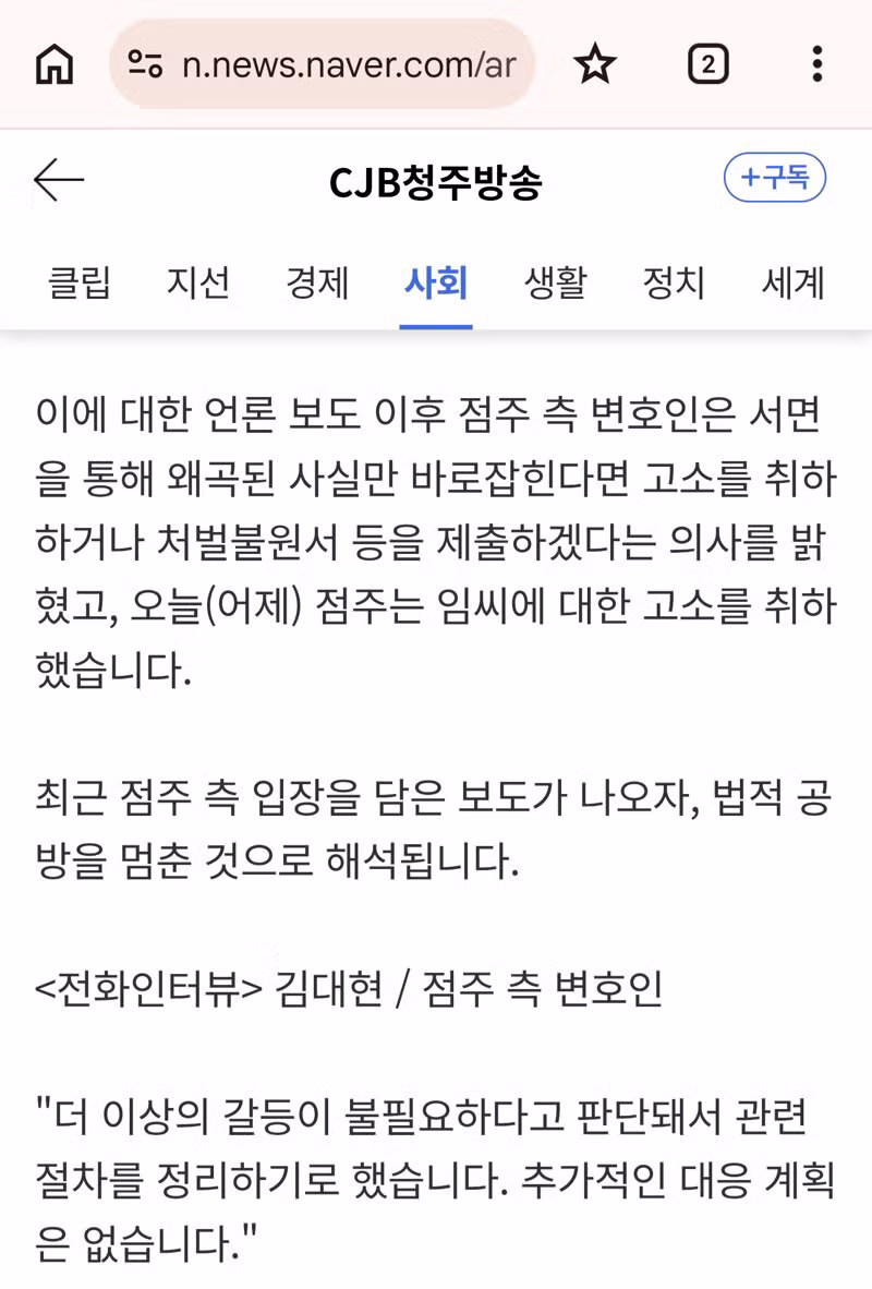 고소는 취하하겠지만, 550만원은 안돌려주겠다 (청주카페 사건)