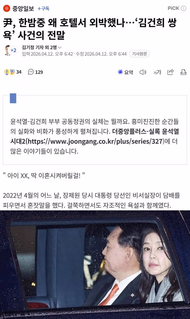 尹, 한밤중 왜 호텔서 외박했나…‘김건희 쌍욕’ 사건의 전말