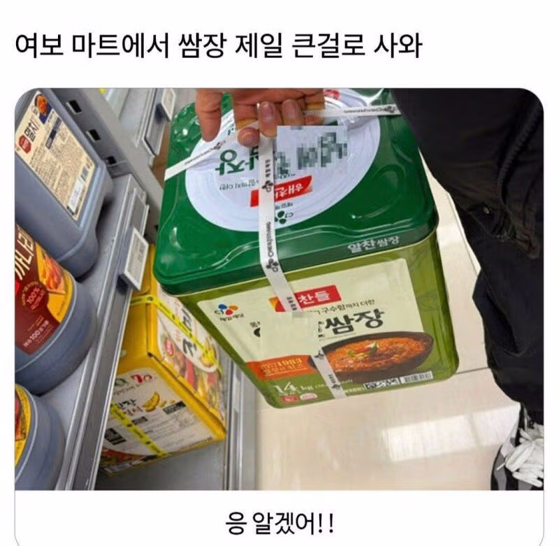 여보! 마트에서 쌈장 제일 큰걸로 사와