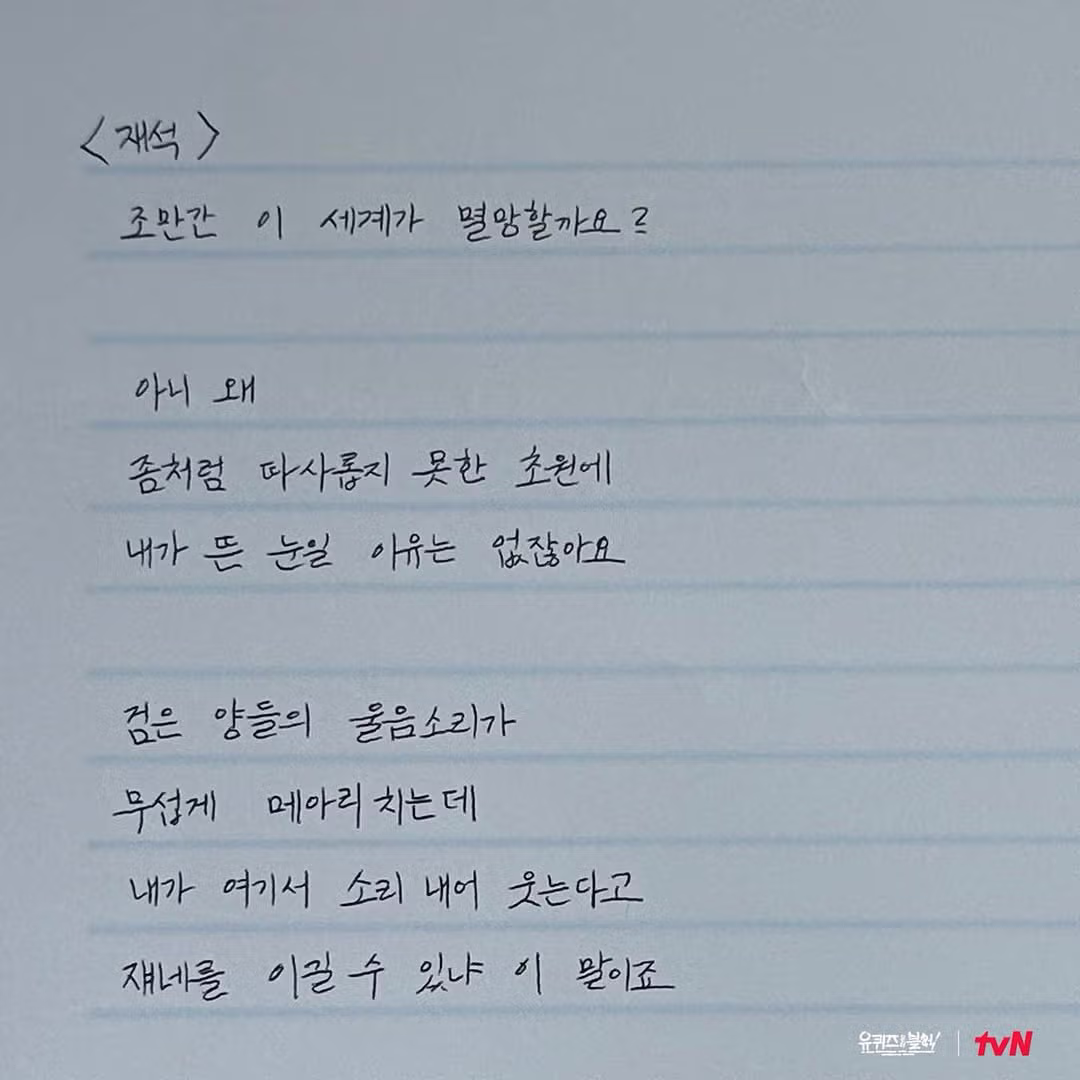 [유퀴즈] 한로로가 큰자기를 위해 직접 쓴 헌정 시 <재석> 원본 공개 🌼