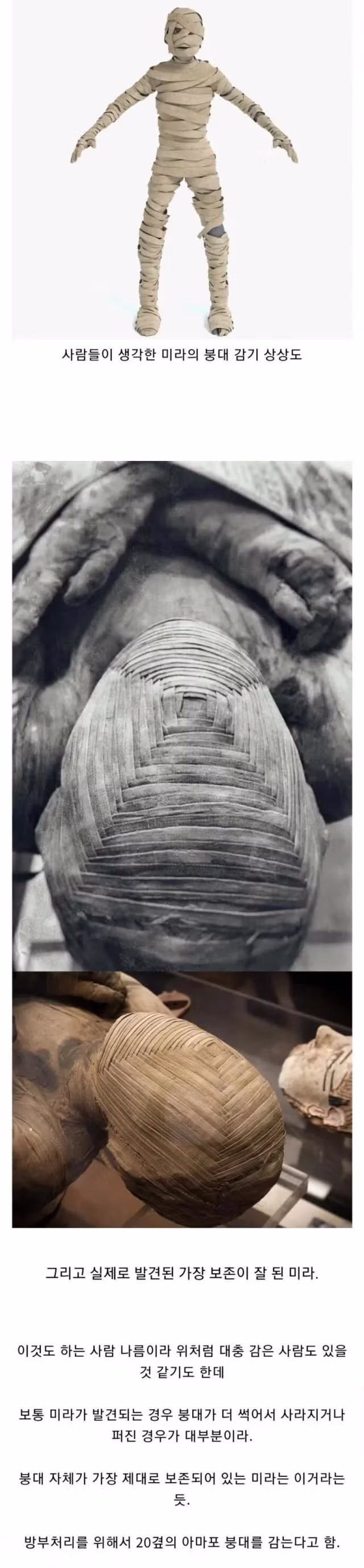 실제로 돈 많은사람은 미라퀄이 다르다고ㅇㅇ 시신에서 장기,액체 등 일일이 다 빼고 긁어내고; 아마포 겹겹이감고 모두 다 당시최고의 기술자+돈을 처발라야 가능
