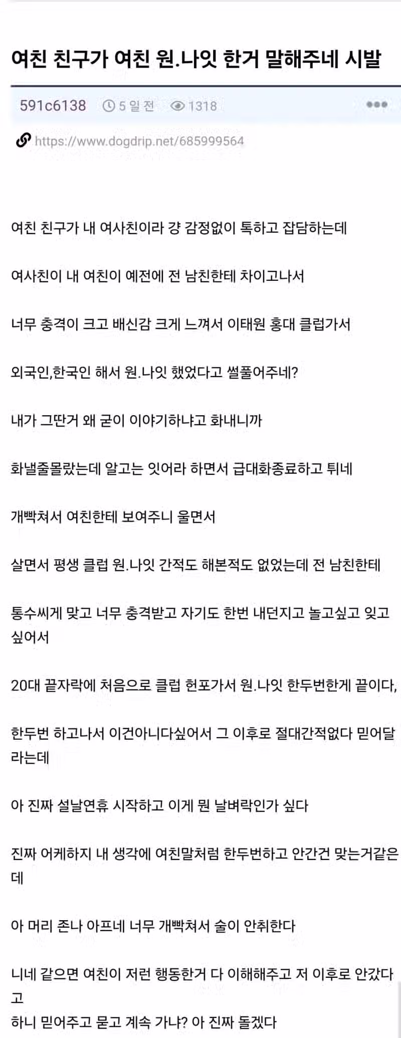 여친 친구가 여친 원나잇 한거 말해주네..