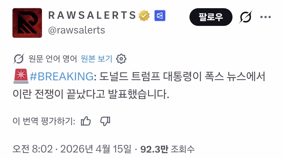 [속보] 트럼프 : 이란전쟁은 끝났다