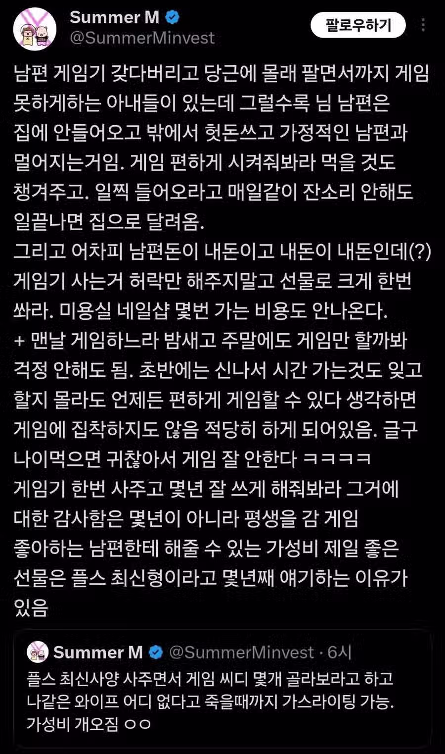 게임 권장 하는 아내