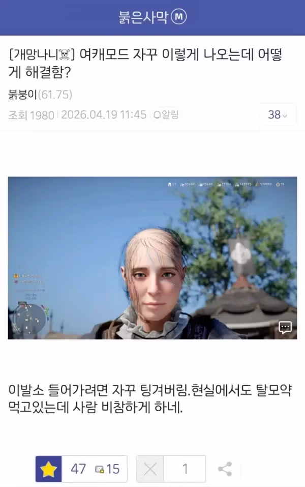 사이버세상에서도 치유하지못한 탈모