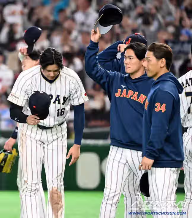 경기 끝나고 한국 덕아웃에 인사하는 오타니 jpg