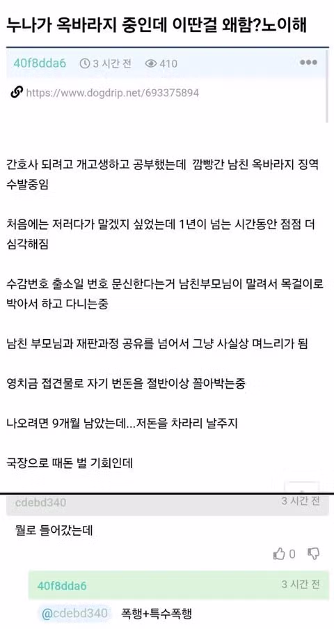 누나가 옥바라지 중인데 이딴걸 왜함? 노이해