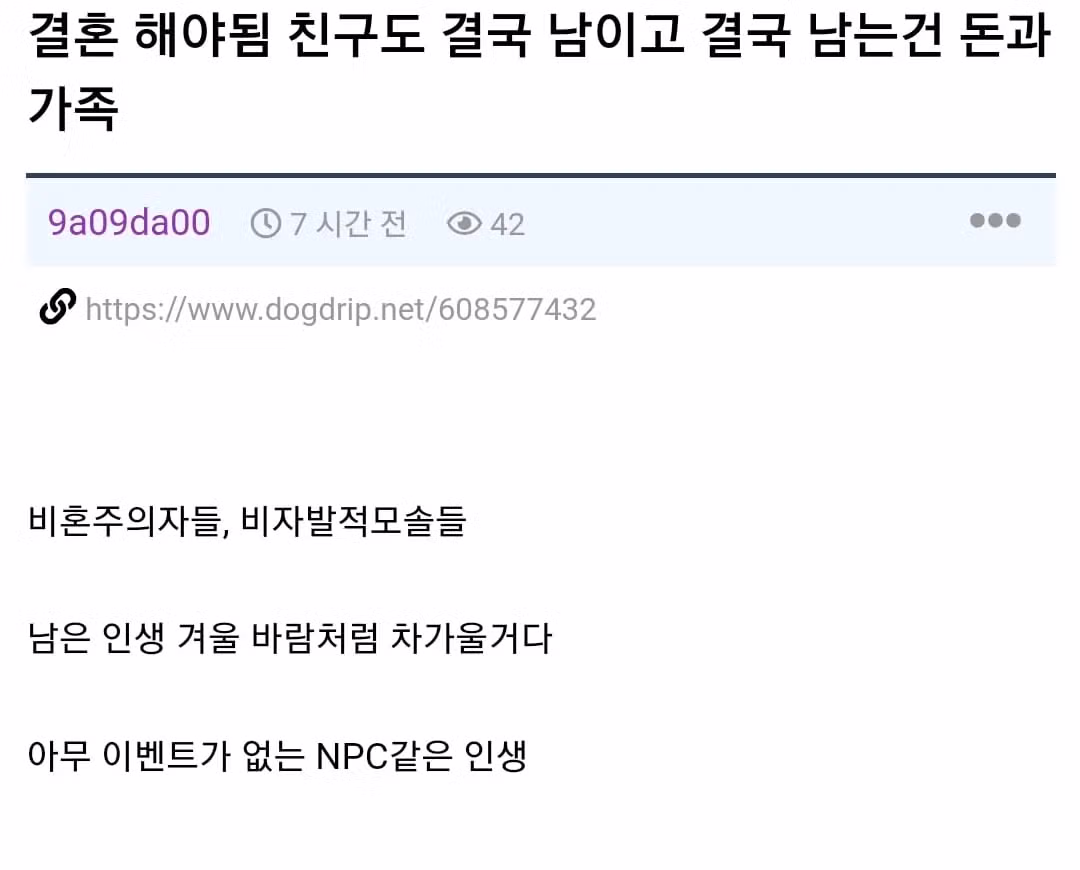 결혼 해야됨.. 친구는 남이고, 결국 남는 건 돈과 가족