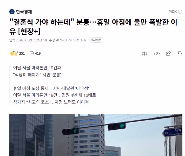 도심 마라톤은 진짜 너무하지 않나요? 이걸 꼭 도심에서 차량통제하면서 해야하나요?